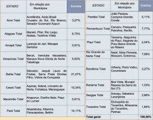 Dentre os 16 estados das duas regiões, a Paraíba possui o oitavo maior número de chacinas, com um total de 25 episódios – o que representa 5,11% dos eventos. De todos os municípios do estado, apenas em três ocorreram os episódios: João Pessoa, Campina Grande e Conde.